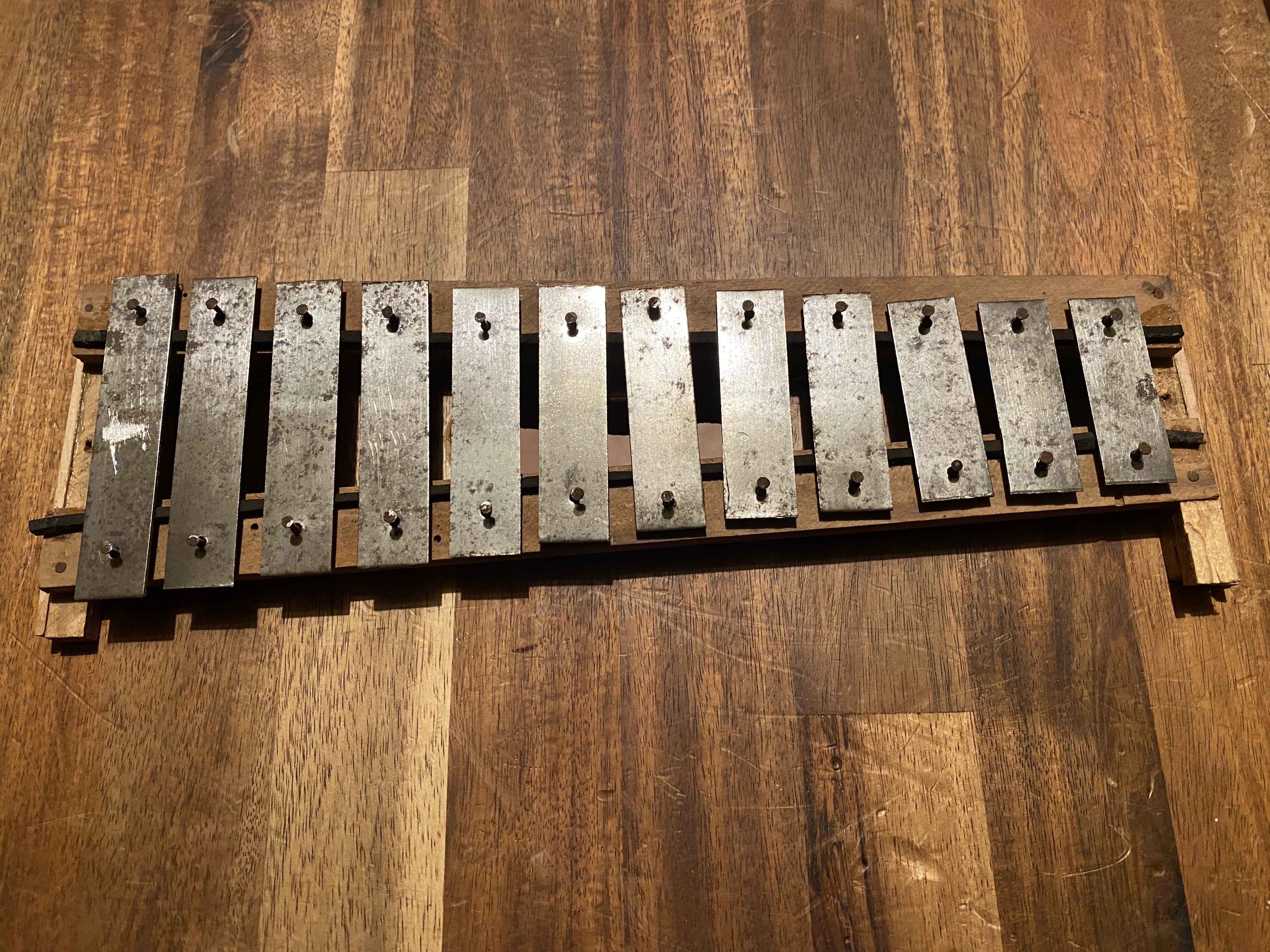 Technisch vollständig überholt, gestimmt 456Hz, Hämmerchen sind Buchenholz-Klötze TxBxH = 7,5 x 13,5 x 14mm |