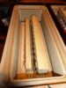 Ahorn-Massivholz, braun lasiert. Die Knöpfe rechts können auf Wunsch auf schwarz+weiss umgeändert werden, ähnl. letztes Bild |